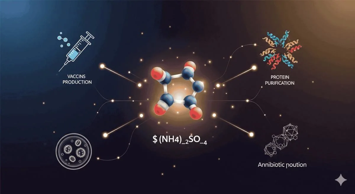 با توسعه صنعت بیوتکنولوژی، نقش سولفات آمونیوم بیش از گذشته اهمیت یافته است. در تولید داروهای نوترکیب، سلولهای کشتشده مقادیر زیادی پروتئینهای درمانی تولید میکنند. برای جداسازی این پروتئینها، سولفات آمونیوم یکی از اولین انتخابهاست. همچنین در تکنیکهای کروماتوگرافی و فرآیندهای تخلیص پیشرفته، این ترکیب بهعنوان عامل کمکی (Buffer salt) برای تثبیت ساختار پروتئینها و آنزیمها استفاده میشود.