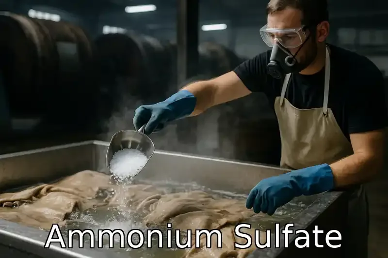 The tanning process consists of several sequential stages, each requiring specific chemicals to prepare the hide and transform it into leather. Ammonium sulfate is one of the most commonly used mineral compounds and plays a role in several key stages: